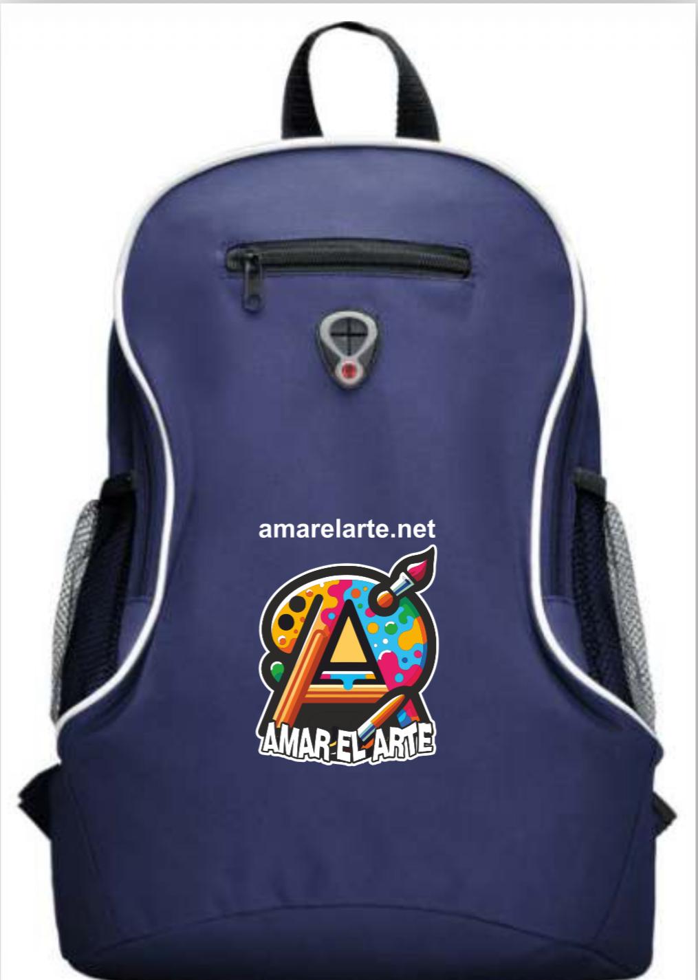 Para los amantes del Arte esta cómoda y resistente mochila, color azul marino,capacidad para 12 litros con asas ajustables, bolsillo frontal con cremallera para almacenamiento , 2 bolsillos laterales en tejido microperforado, y salida para auriculares.